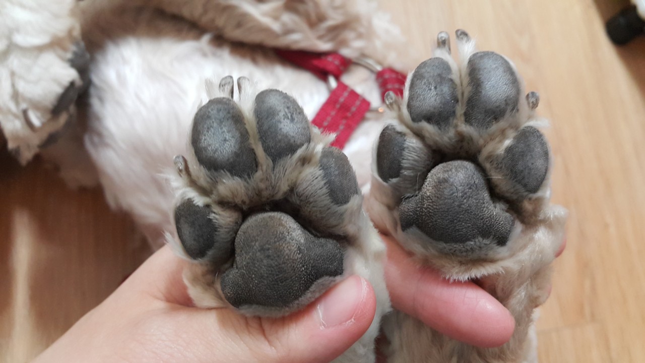 2-3번째 사진은 산책을 다녀 온 후 더러워진 발 사진 입니다.